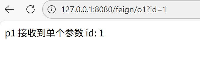 访问 127.0.0.1:8080/feign/o1?id=1 接口,测试远程调用: