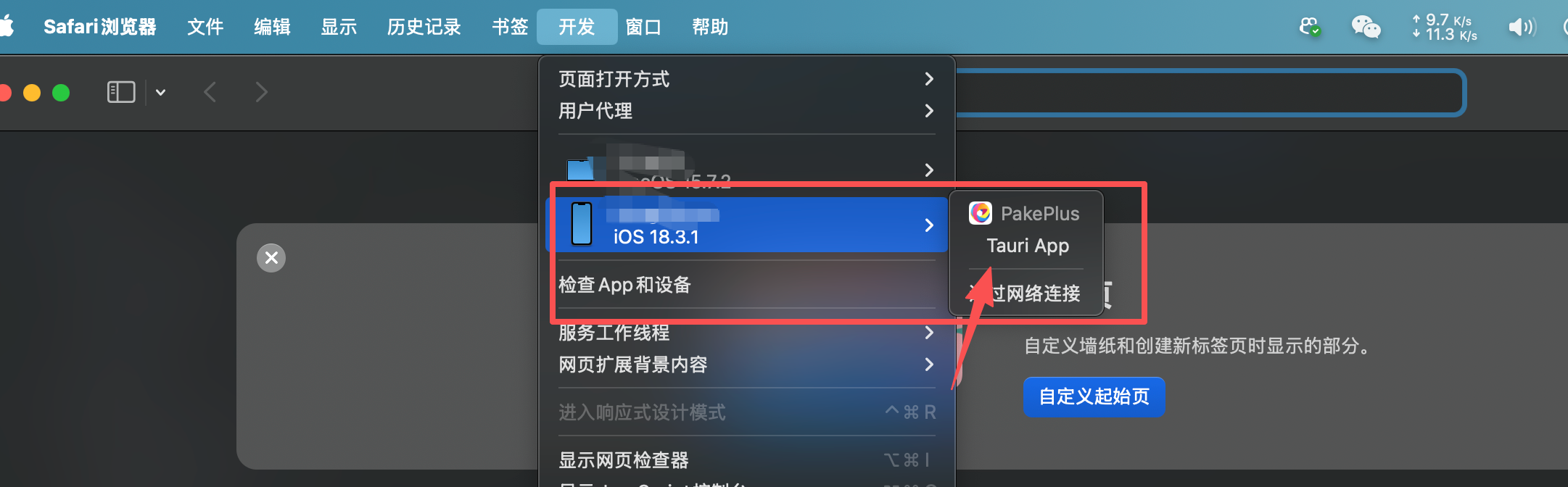 开启后,用数据线连接Mac电脑,启动APP,然后打开Safari: