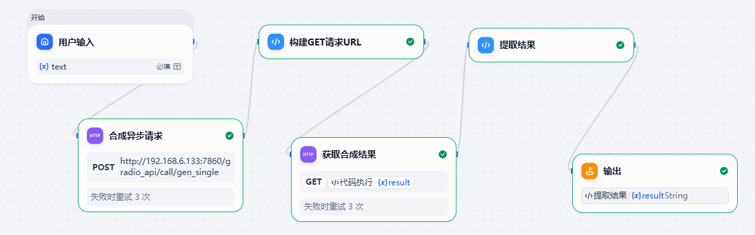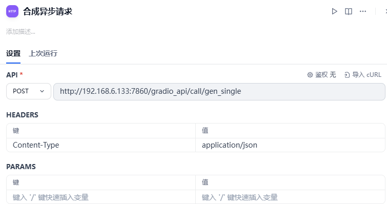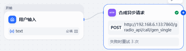 - 在工作流中添加 HTTP请求节点,使用HTTP方式调用 IndexTTS2服务