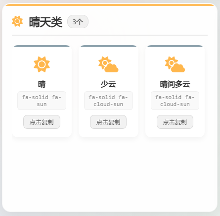 { desc: "晴", icon: "fa-solid fa-sun" },