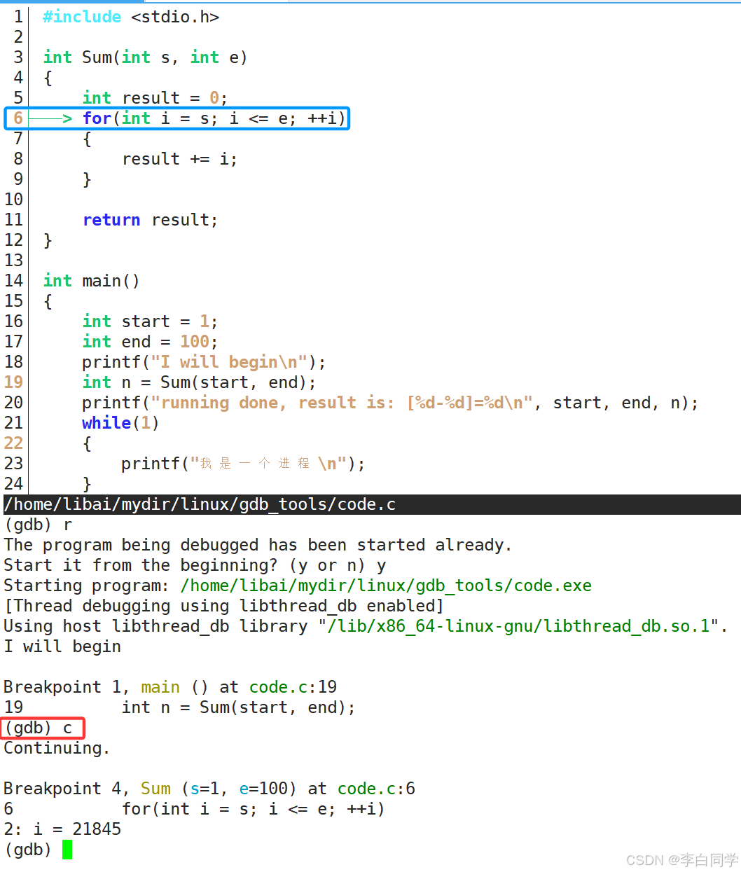 3.10 从当前行开始连续执行程序: c在断点之间连续执行