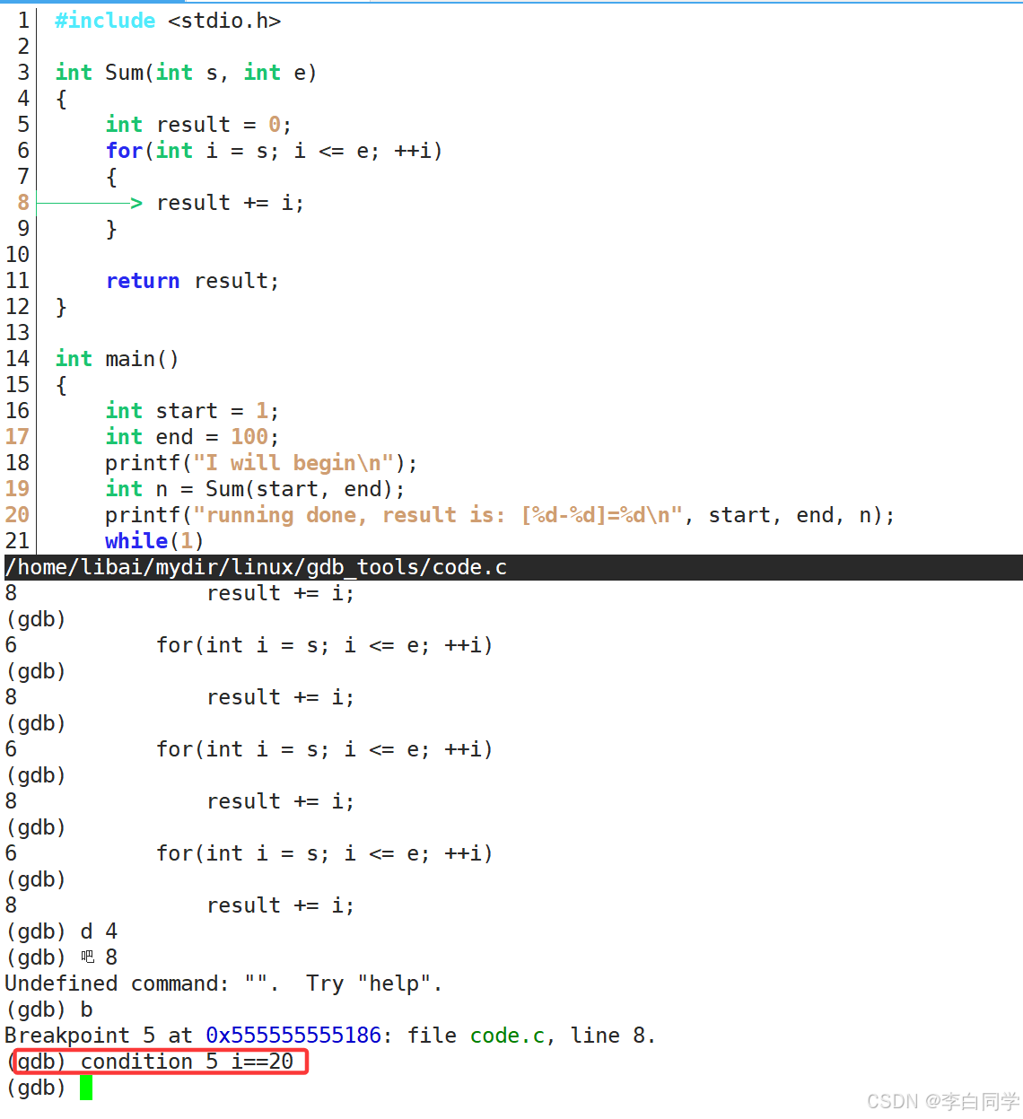 3.18 在已有断点的情况下新增、修改条件:condition 断点编号 变量名==num