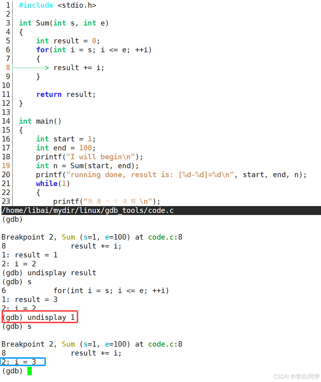 **3.7 取消查看变量:**undisplay 变量名号,undisplay 1 这时就看不到 result