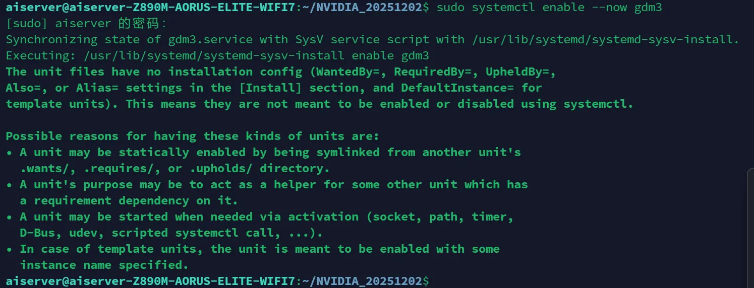 之前因驱动安装失败关闭了图形化界面,恢复图形化界面