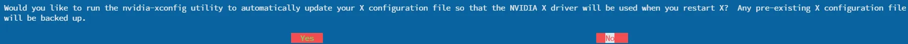 | Yes | 自动更新 X 配置文件,开机后 GUI 自动使用 NVIDIA 驱动 | ✅ 推荐,尤其是桌面环境(GNOME/KDE) |