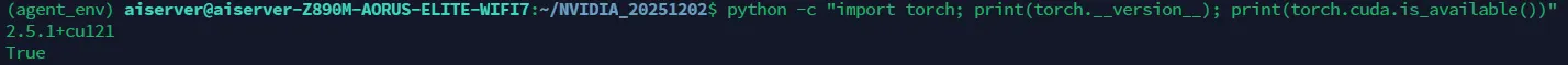 python -c "import torch; print(torch.__version__); print(torch.cuda.is_available())"
