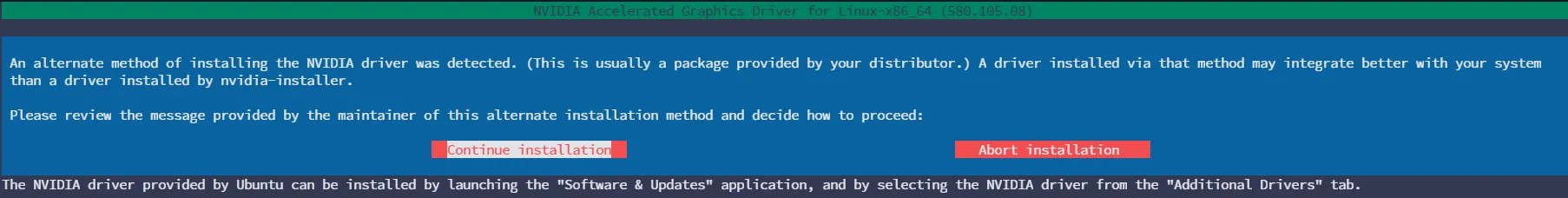 sudo ./NVIDIA-Linux-x86_64-580.105.08.run --compat32-libdir=/usr/lib32