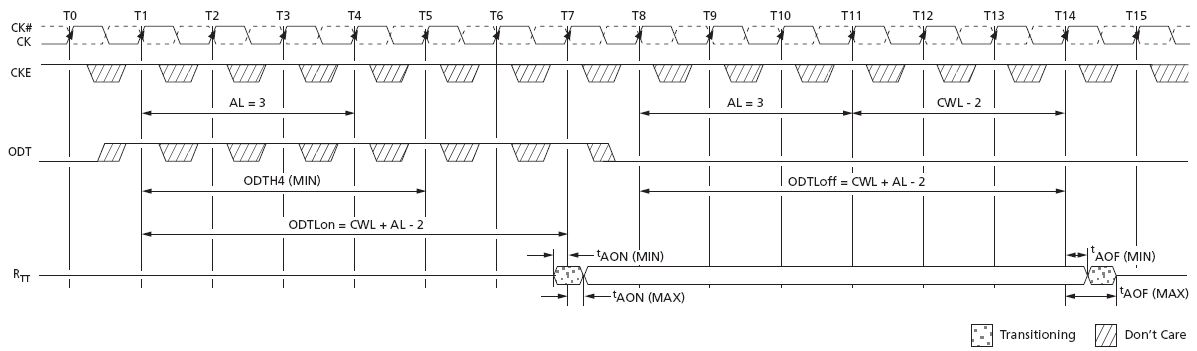 在模式寄存器中将 ODT 功能禁止时,外部的 ODT 控制管脚就无意义。 ODT 包括普
