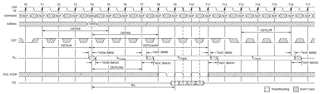动态 ODT 模式,此时的电阻值变为 RTT.WR,当完成写入命令以后, RTT 值又回到