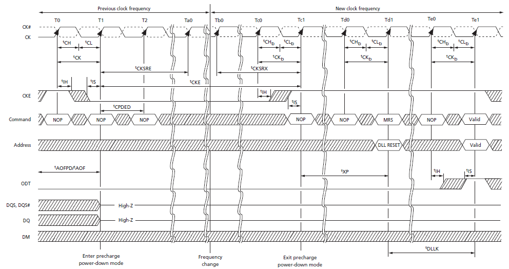 需要改变外部输入的时钟频率,只有两种方式:自刷新模式或预充电 Power-down