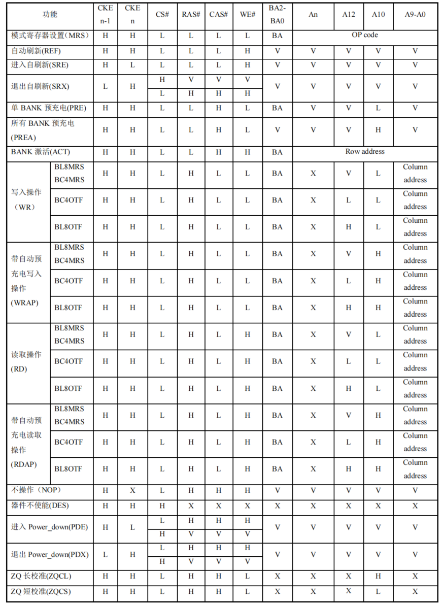 - BA[2:0]:BANK地址输入。在激活、读取、写入或预充电命令操作时,提供 BANK 地址;在加载模式寄存器命令的时候,决定设置哪种模式寄存器。