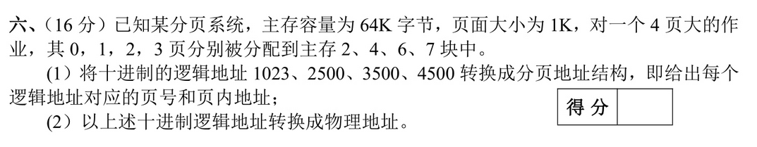 计算物理地址:逻辑地址算出的页号对应的物理块号*页面大小+页内地址