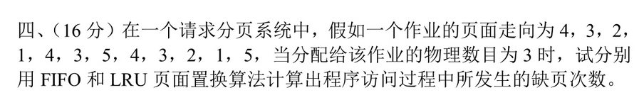 缺页次数 = 9,缺页率 = 9/11≈81.8%(注:这里序列的特殊性,页框数 4 时缺页次数和 3 相同,实际 LRU 通常页框越多缺页越少)。