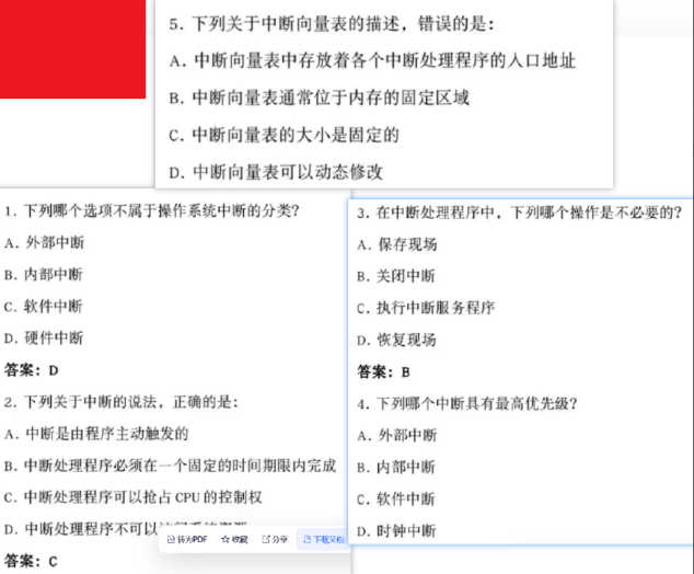 题目:在中断处理程序中,下列哪个操作是不必要的?