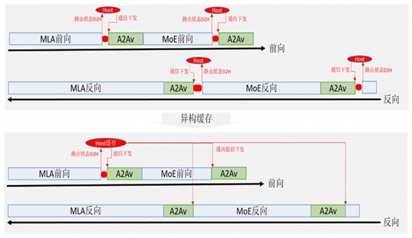 昇思MindSpore通过其异构能力实现AlltoAllV收发send_list/receive_list的异构复用,将断流次数从4次降低到1次。在DeepSeek V3 671B实训测试,端到端性能提升5%。
