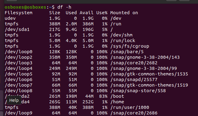 df -h