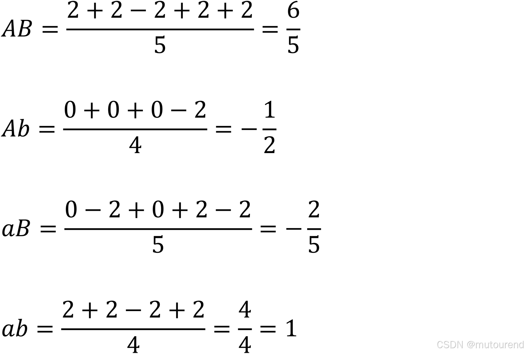 通过统计,爱丽丝和鲍勃汇总了测量结果,并计算出了 AB、Ab、aB 和 ab 的平均值: