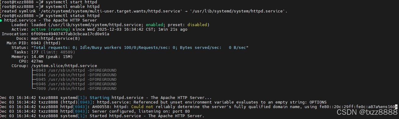 5.apache web服务器标准的目录是/var/www/html,我们再此目录下创建子目录。