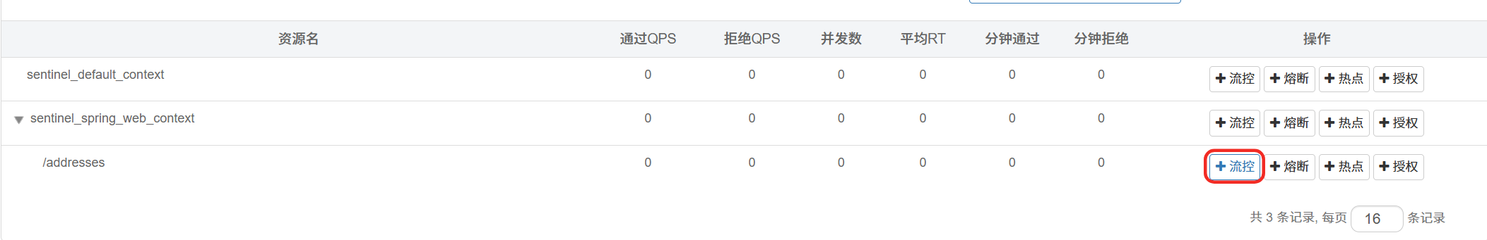 接下来就可以通过 sentinel 进行限流控制,点击流按钮,
