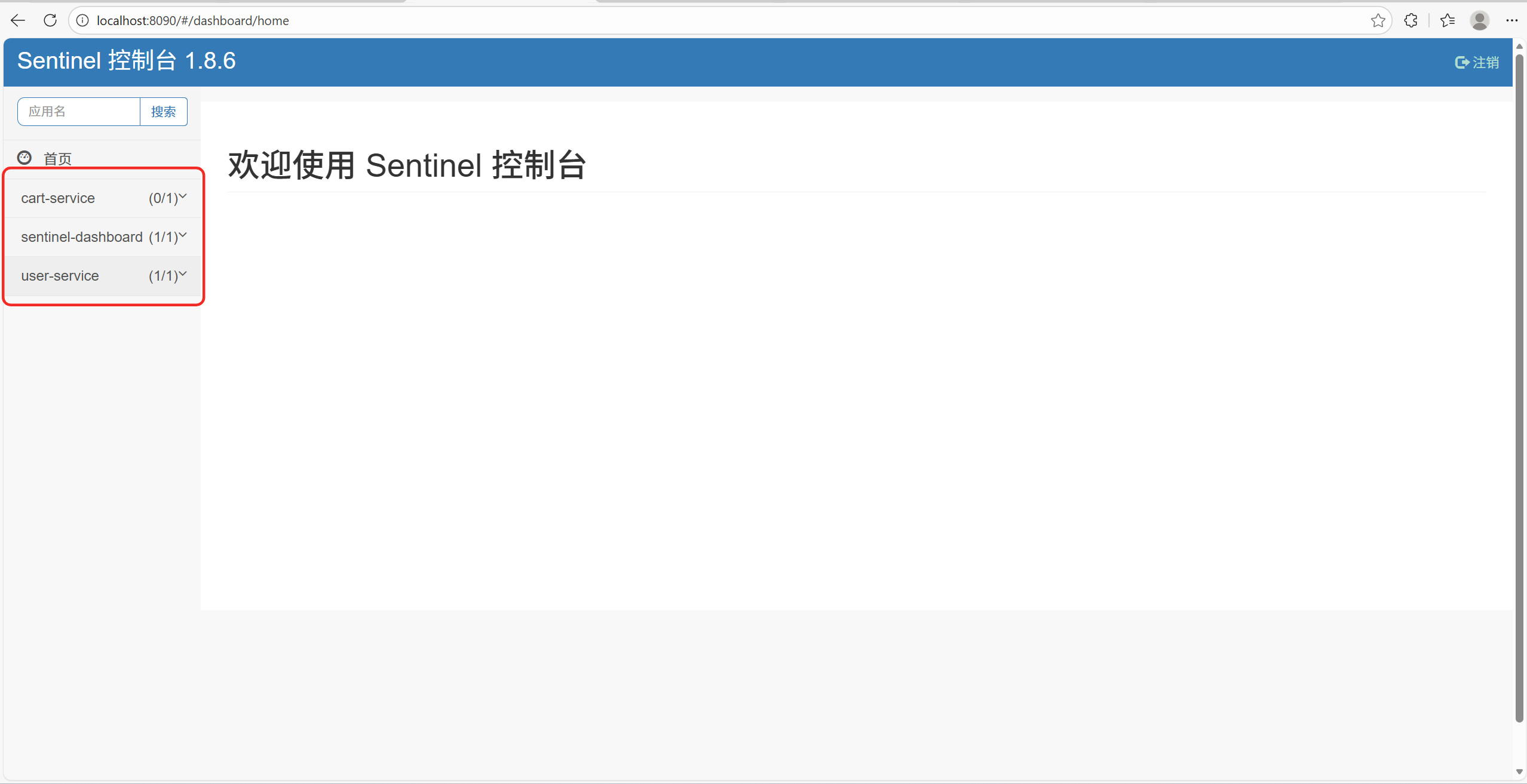 启动应用后,首次访问任意被 Sentinel 监控的接口,Sentinel 客户端会自动将该服务的调用信息上报到 sentinel-dashboard 控制台。