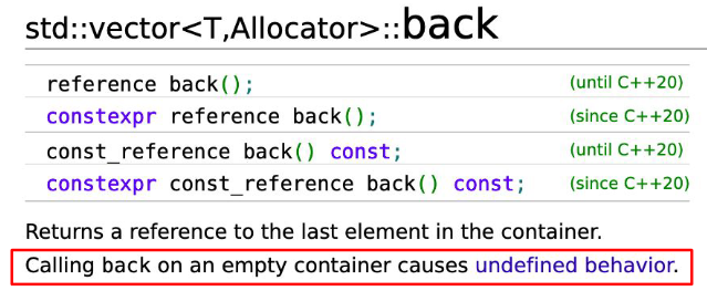 现在,back () 函数会明确告知(开发者):容器中可能存在也可能不存在最后一个元素。
