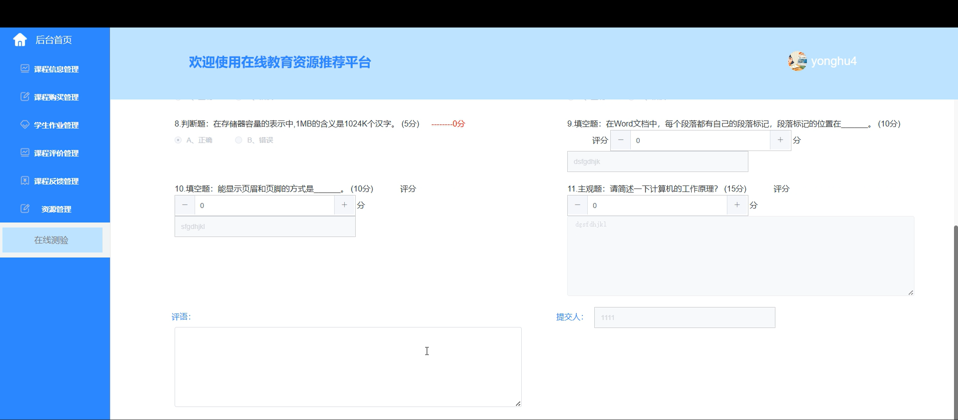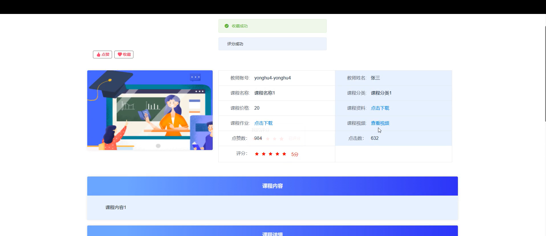 学生可对课程和教师评分评论;管理员分析反馈数据,生成优化报告,助力课程与教学质量提升。