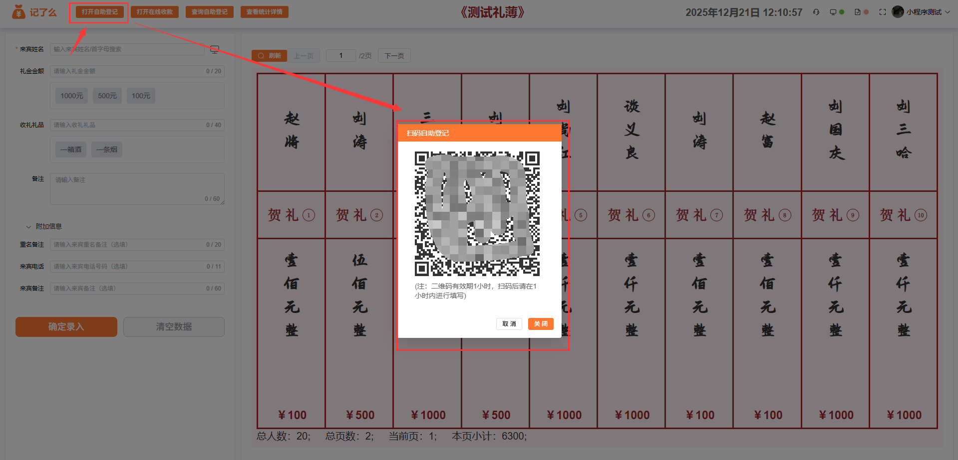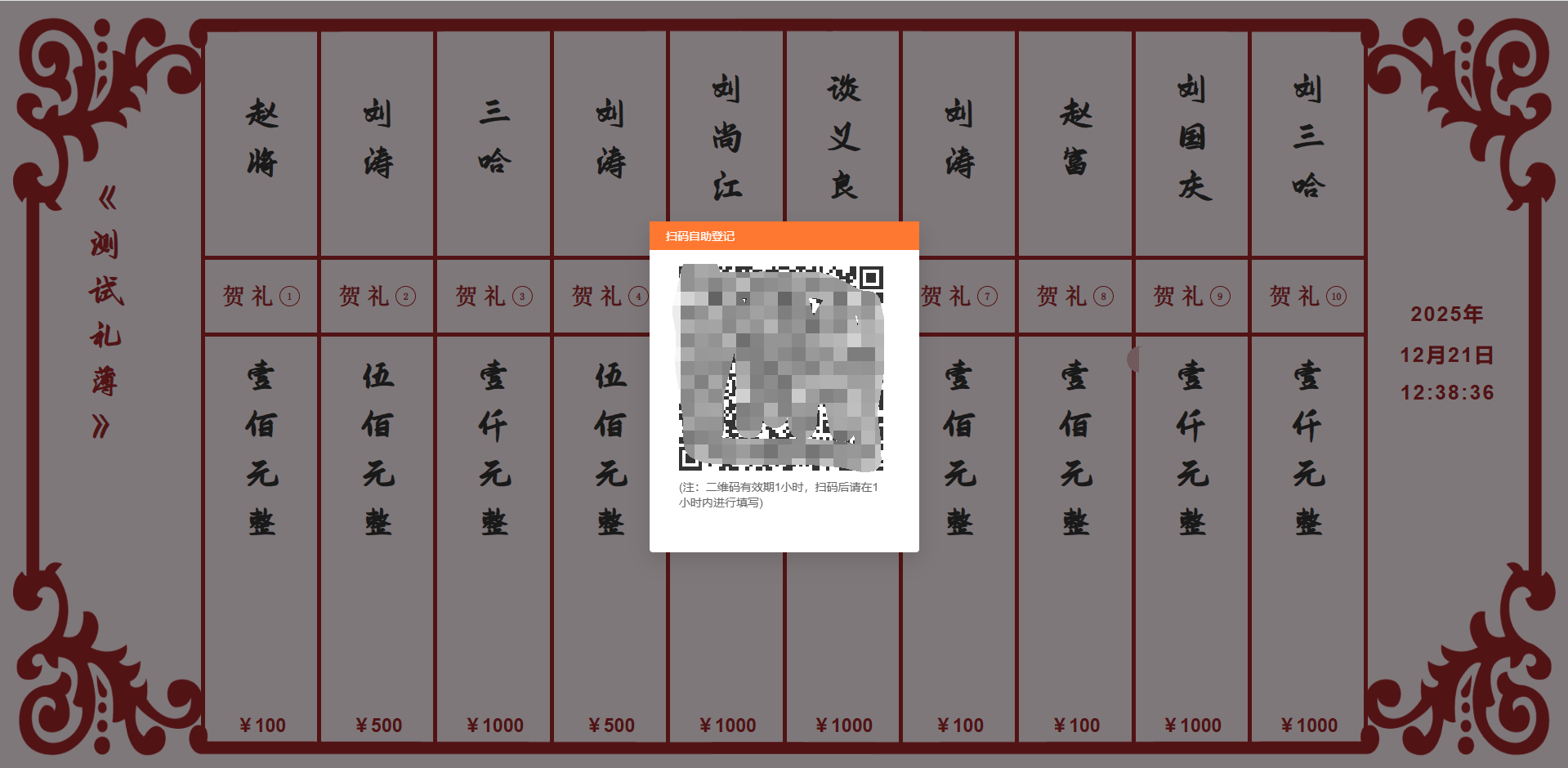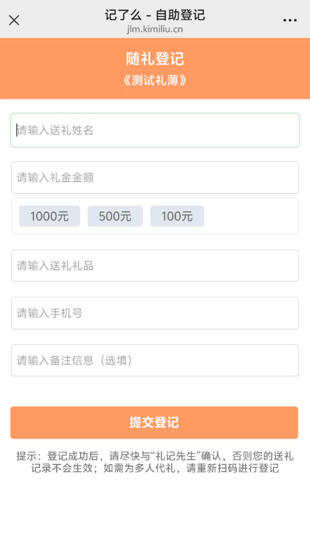 随礼人自助登记界面: