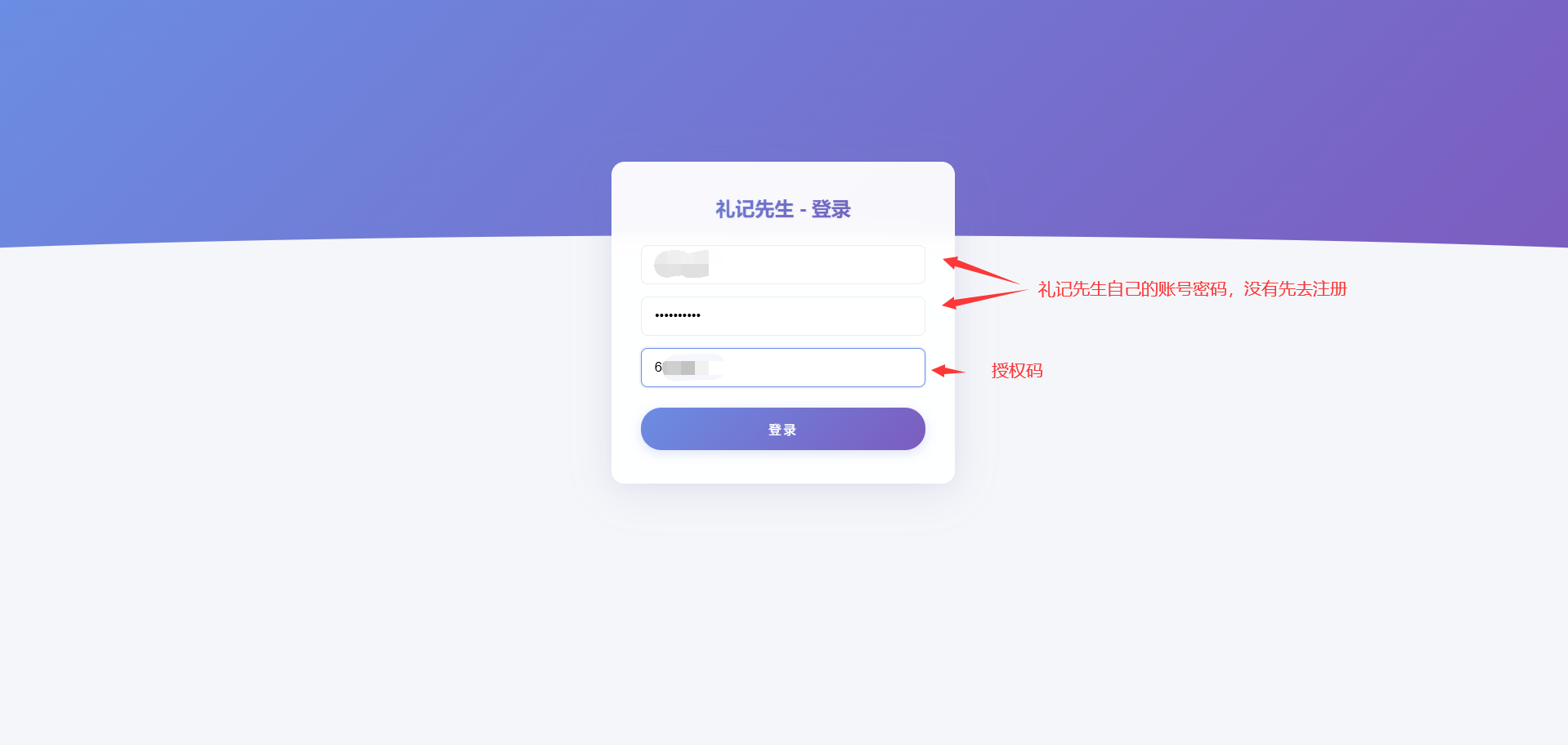 礼记先生打开网址,输入礼记先生自己的账号/密码(如果没有需要先进行注册)和授权码进行登录。