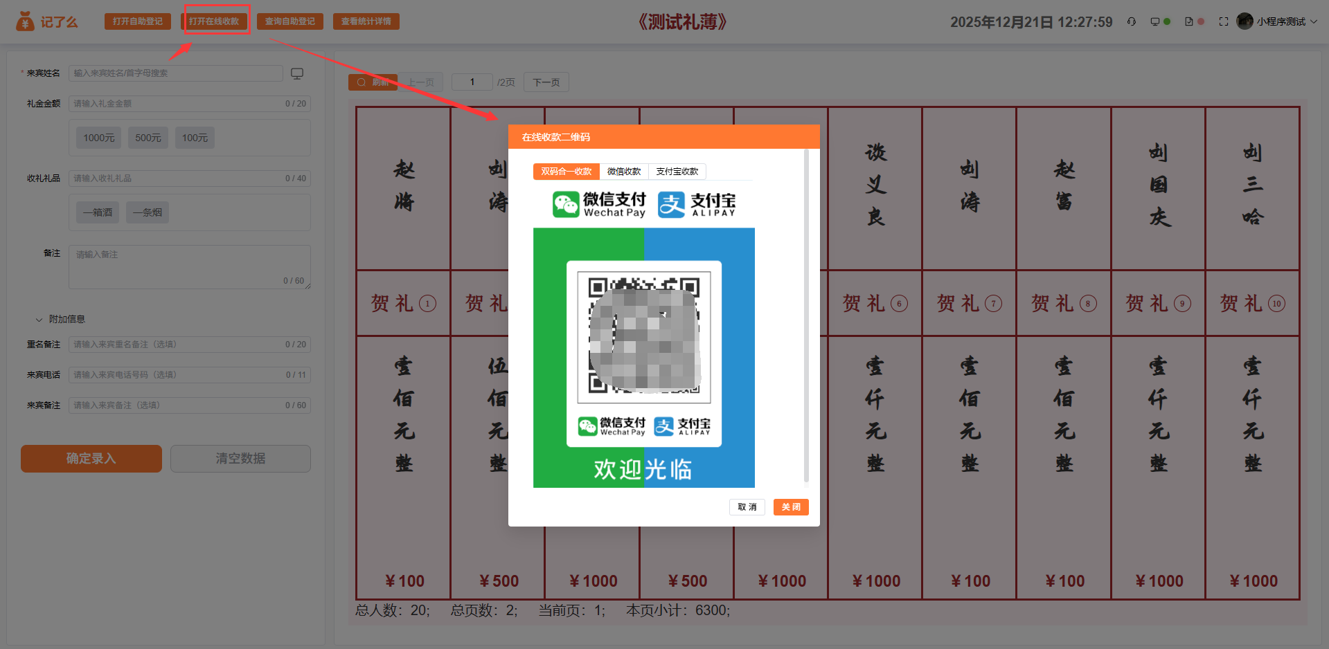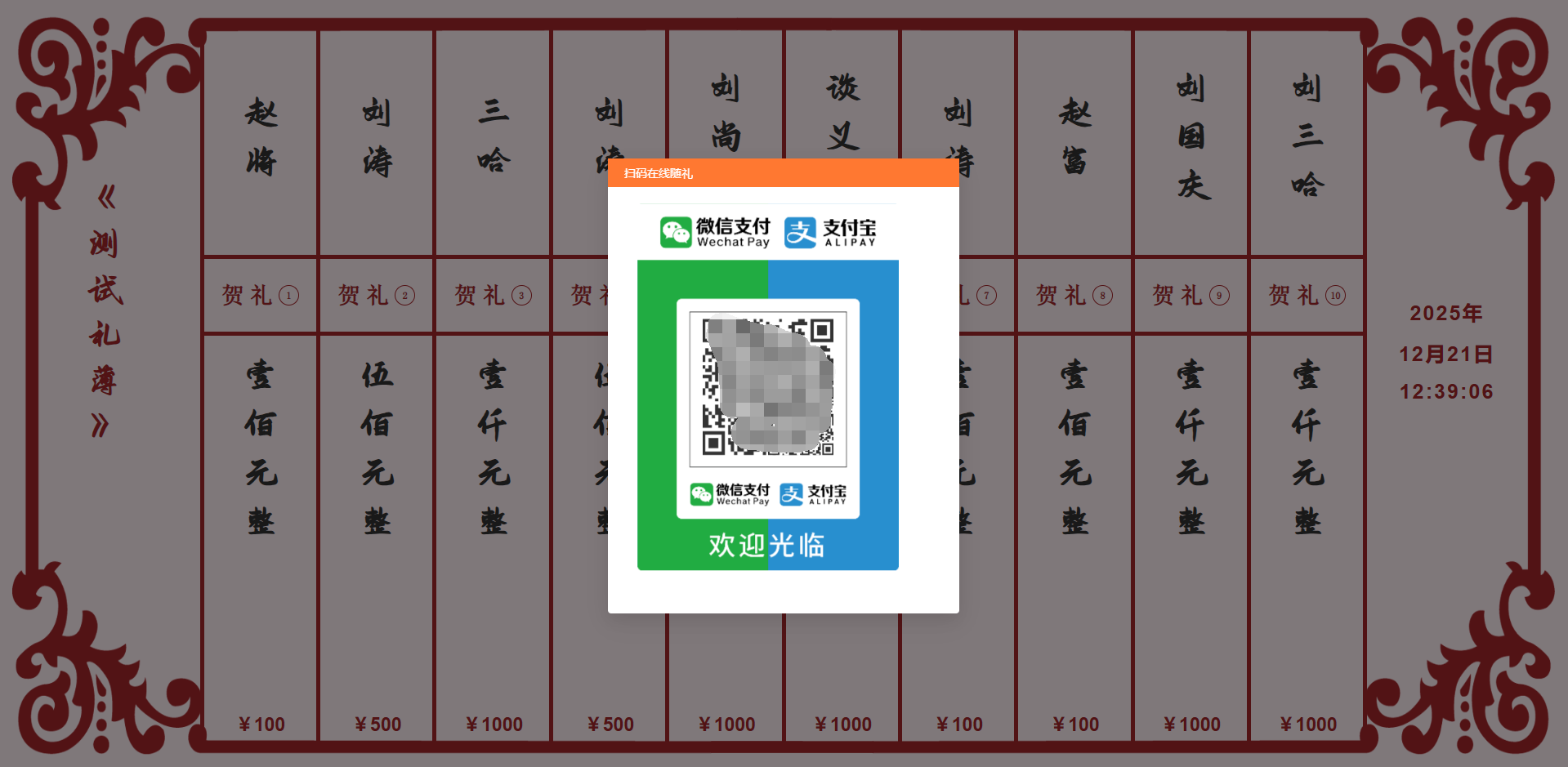 礼记中心-展示收款二维码:随礼人可以直接扫描二维码在线付款随礼。