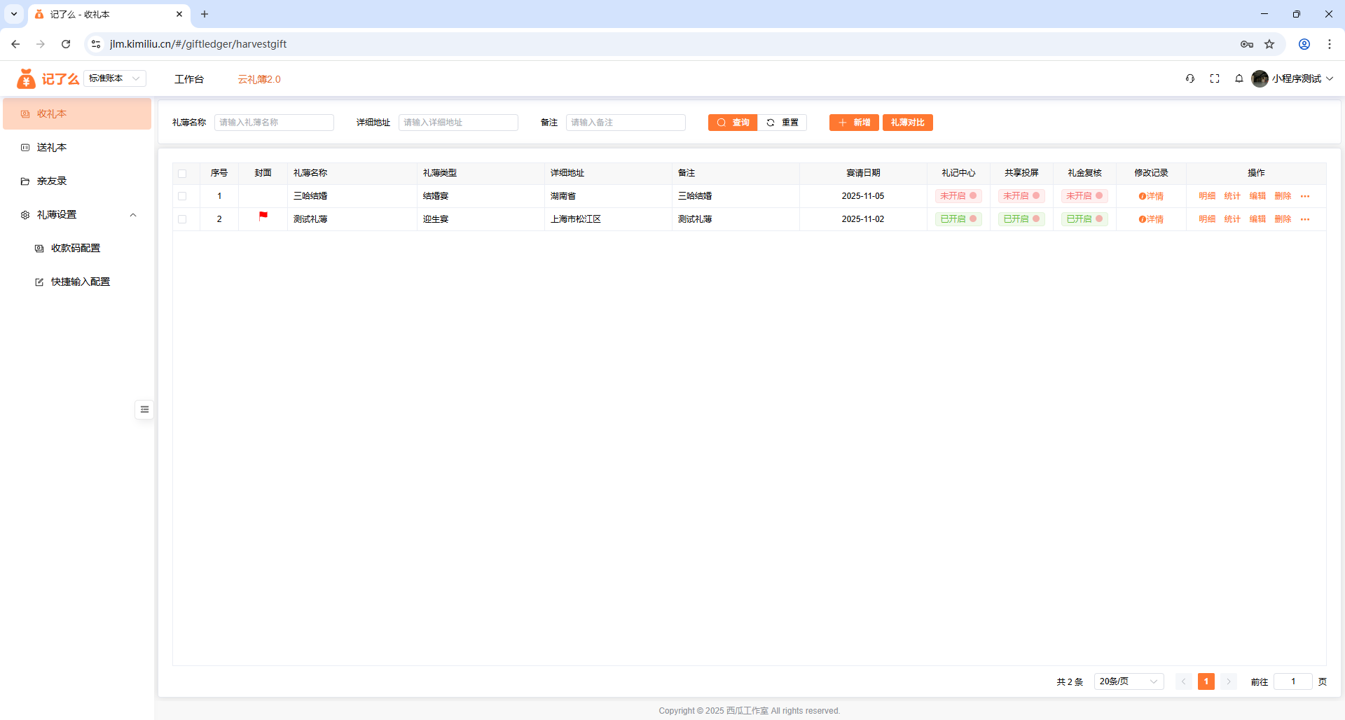 当你注册登录账号后,可以在后台管理你的收礼本、送礼本、亲友、收款码配置、快捷输入等配置。