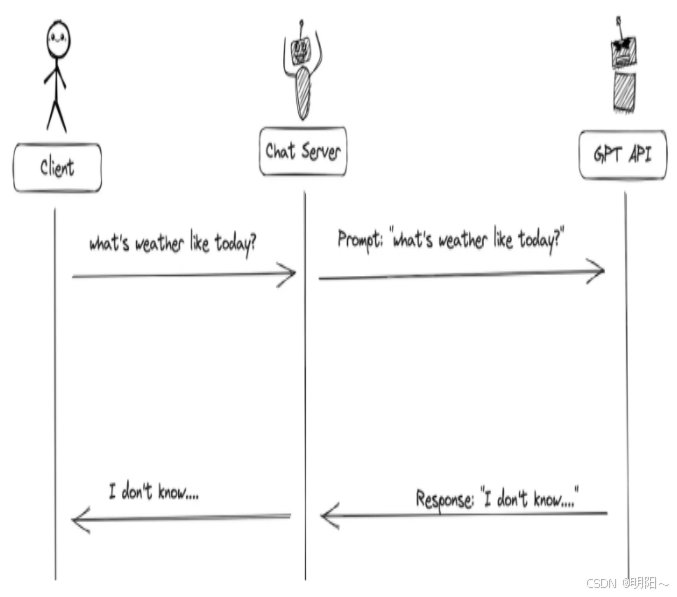 1、当没有函数调用(funciton call)时候,我们调用GPT构建AI应用的模式非常简单。