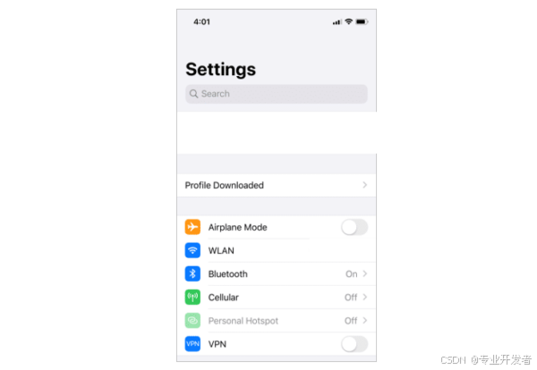 在 "设置" 应用中,点击如下所示的 "已下载配置文件" 标签。
