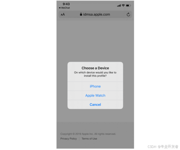 如下图所示,选择 "iPhone" 来安装此配置文件。