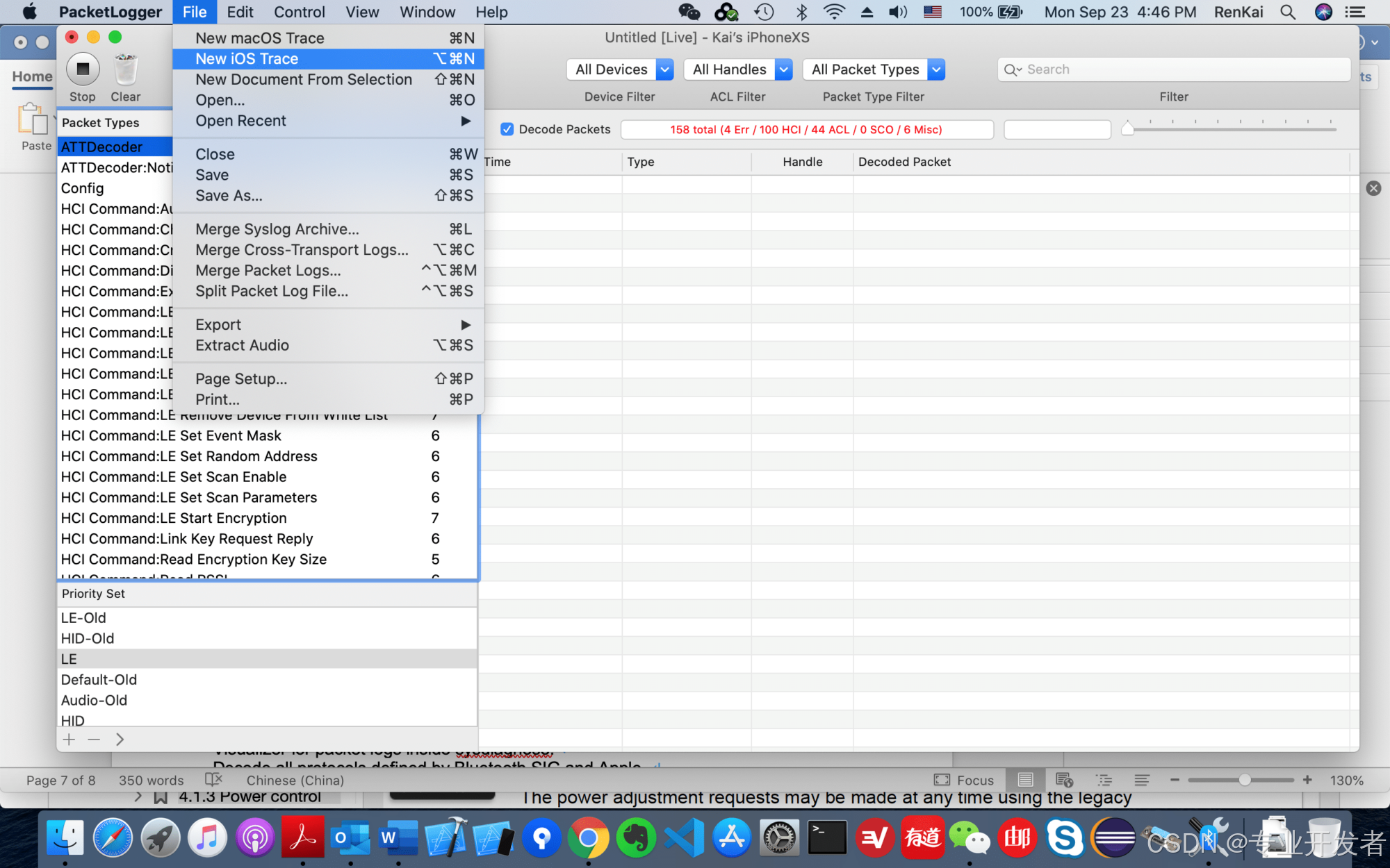 另外,经真机测试,packetLogger 支持传统蓝牙(BR/EDR)和蓝牙低功耗。