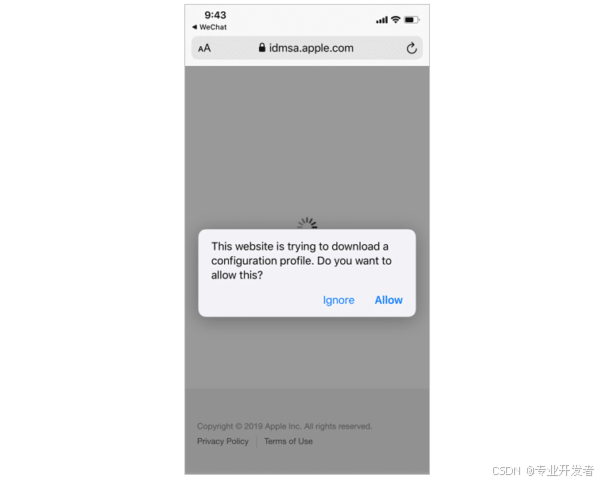 浏览器会提示你登录 Apple 开发者账号。登录成功后,会显示如下页面,此时点击 "Allow" 按钮即可。