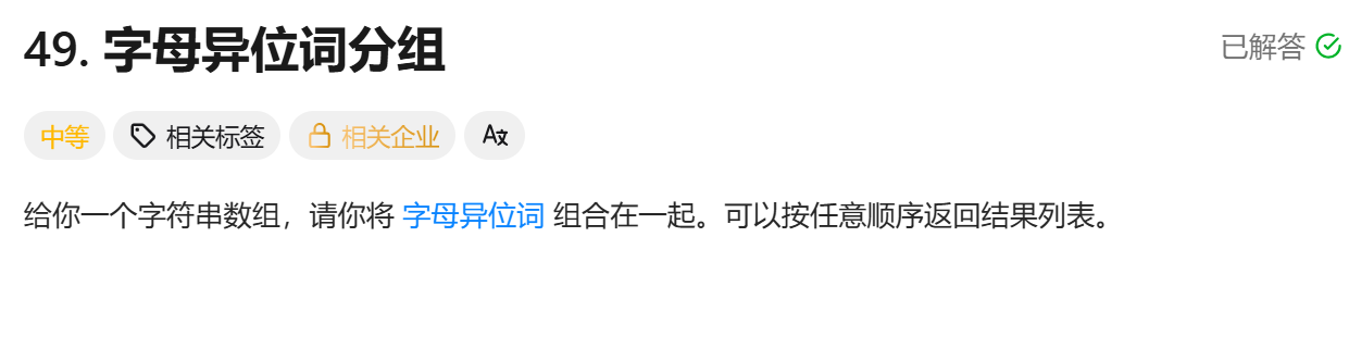 题目链接:https://leetcode.cn/problems/group-anagrams/description/
