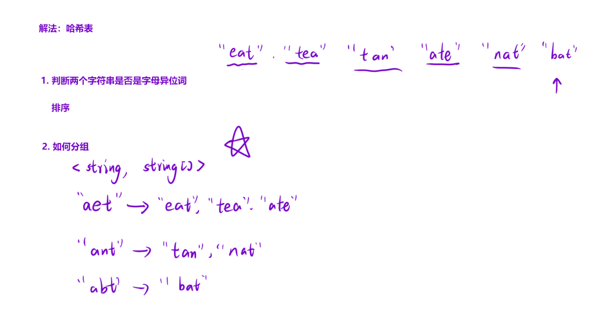 //1.把所有的字母异位词排序