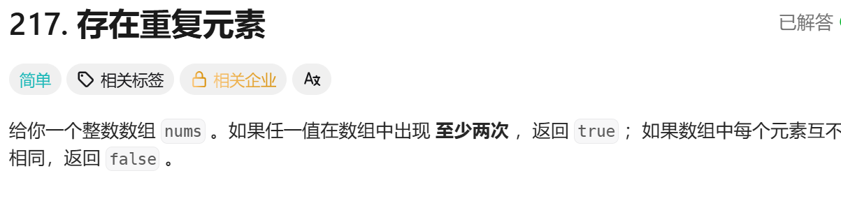 题目链接:https://leetcode.cn/problems/contains-duplicate/description/
