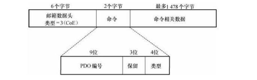 | 类型 | CoE 服务类型,0:保留1:紧急事件信息2:SDO 请求3:SDO 响应4:TxPDO5:RxPDO6:远程 TxPDO 发送请求7:远程 RxPDO 发送请求8:SDO 信息9-15:保留 |