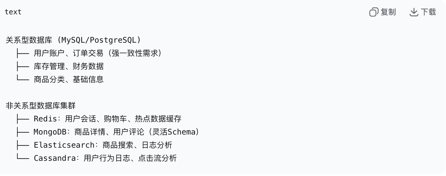 现实:现代企业应用越来越倾向于"多数据库架构",即针对不同数据类型和使用模式选择不同的存储方案。