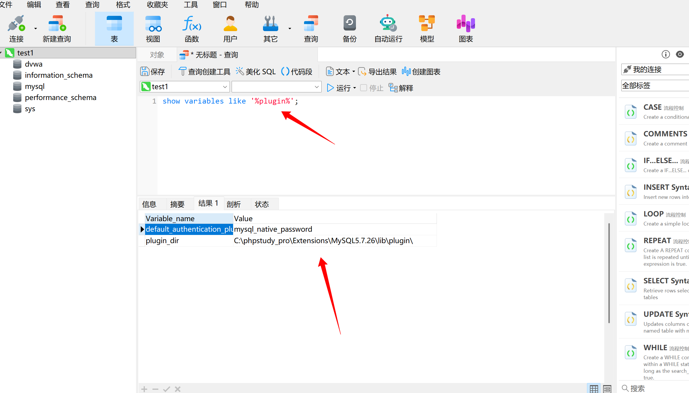 plugin目录:C:\phpstudy_pro\Extensions\MySQL5.7.26\lib\plugin\