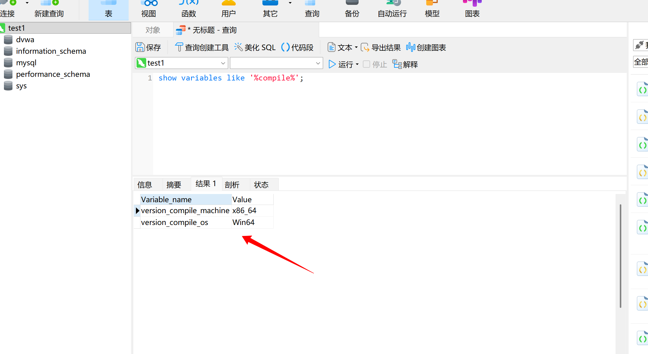 新建查询,查询Mysql数据库所在系统位数:64位数
