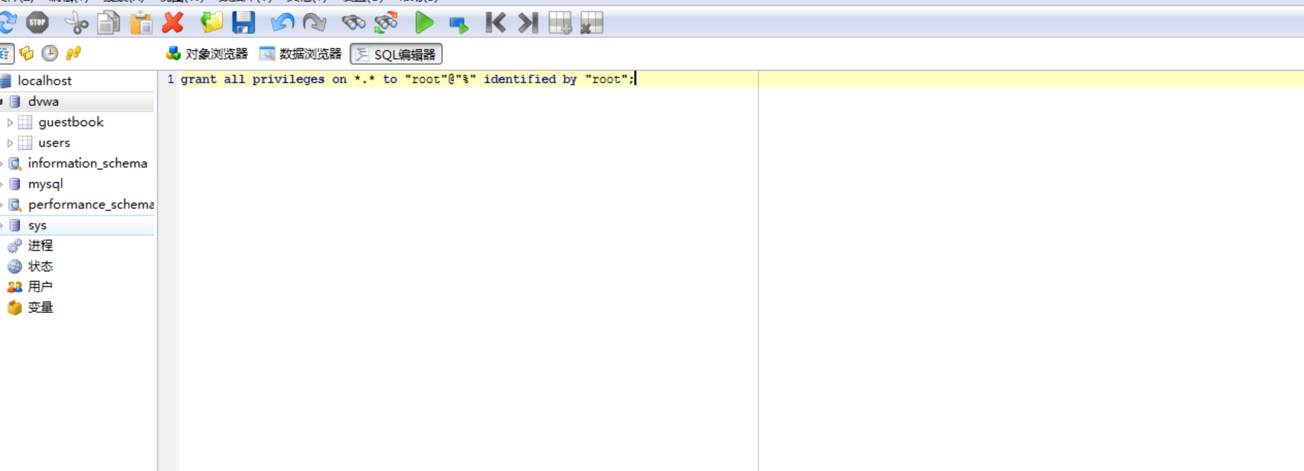grant all privileges on *.* to "root"@"%" identified by "root";