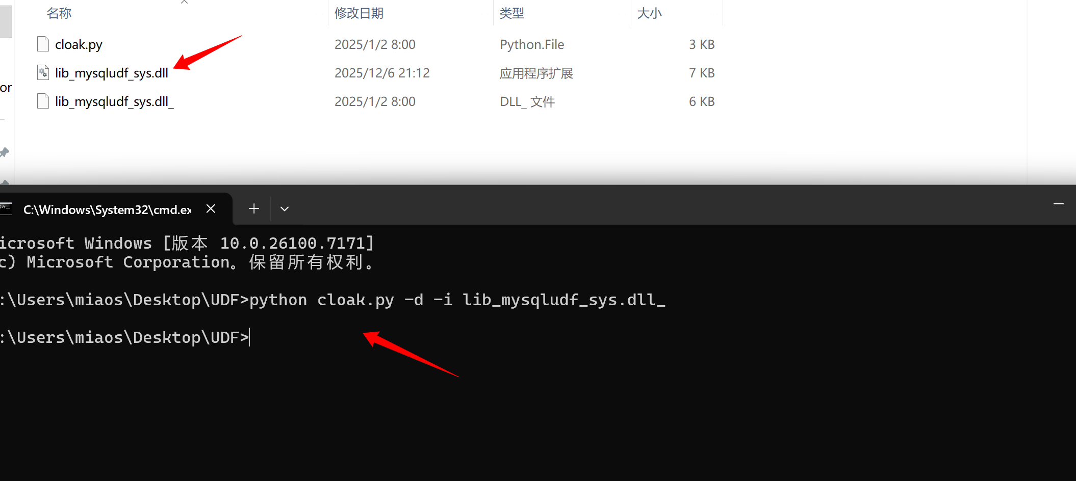 python cloak.py -d -i lib_mysqludf_sys.dll_