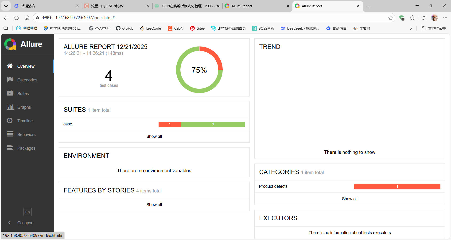 Allure Report由一个框架适配器和allure命令行工具组成,是一个流行的开源工具,用于可视化测试运行的结果。它可以以很少甚至零配置的方式添加到您的测试工作流中。它生成的报告可以在任何地方打开,并且任何人都可以阅读,无需深厚的技术知识.