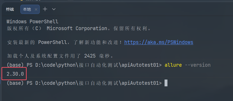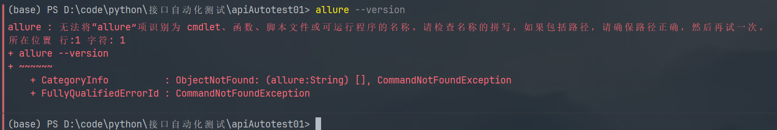 cmd中执行allure --version可以打印版本,但是pycharm控制台执行命令提示命题找不到: