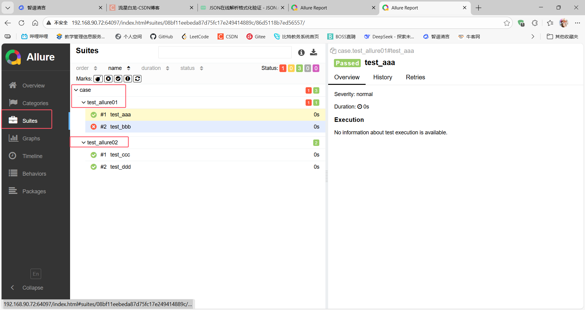 在Suites模块里面是按照测试用例的层级来摆放的,点击对应的测试用例就可以看到他具体的数据。具体可以自己摸索。
