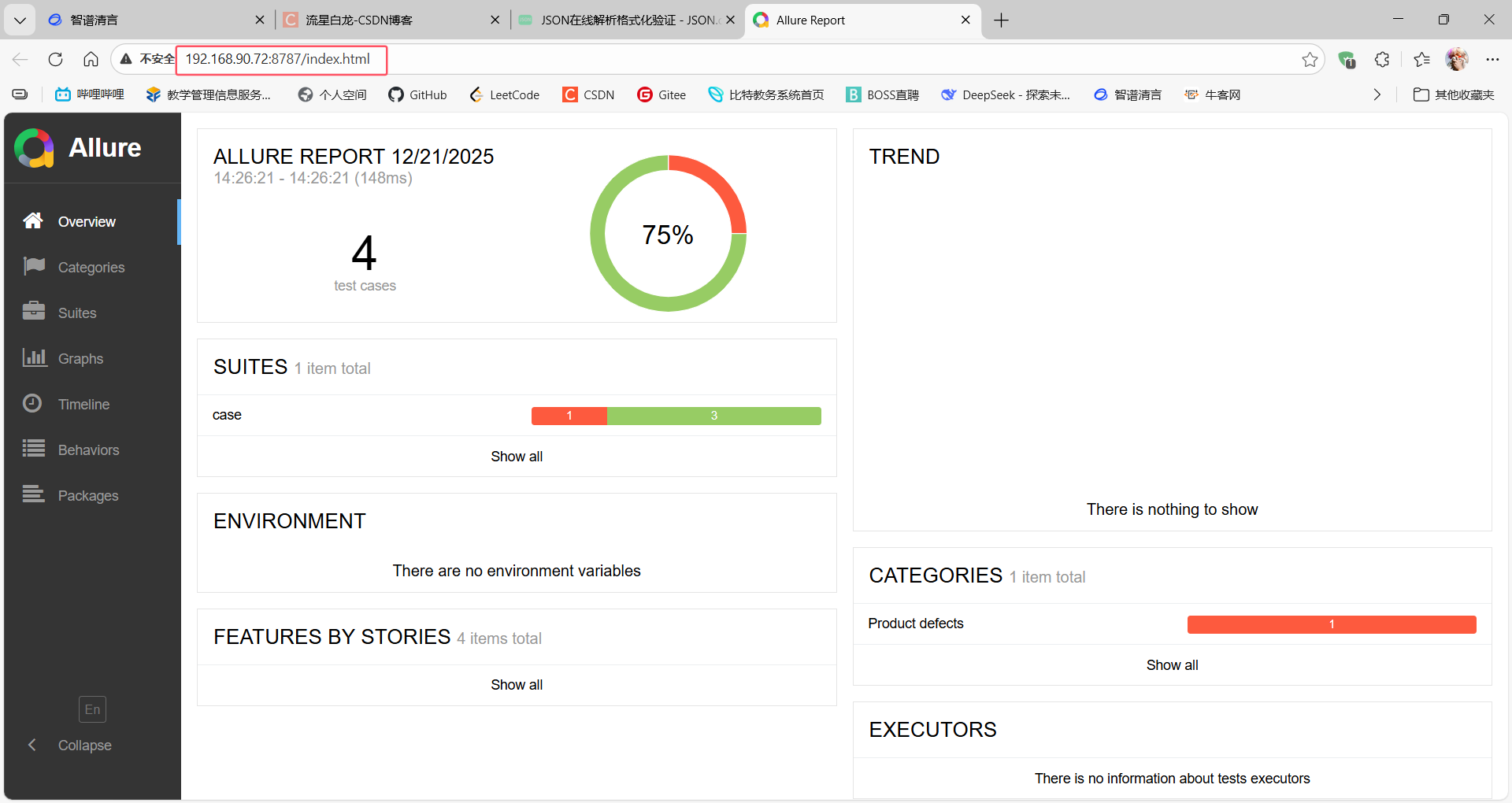 --host:指定服务器监听的主机地址,默认为localhost。--port:指定服务器监听的端口号,默认为0(自动选择空闲端口)--clean-alluredir:清除上一次生成的测试报告