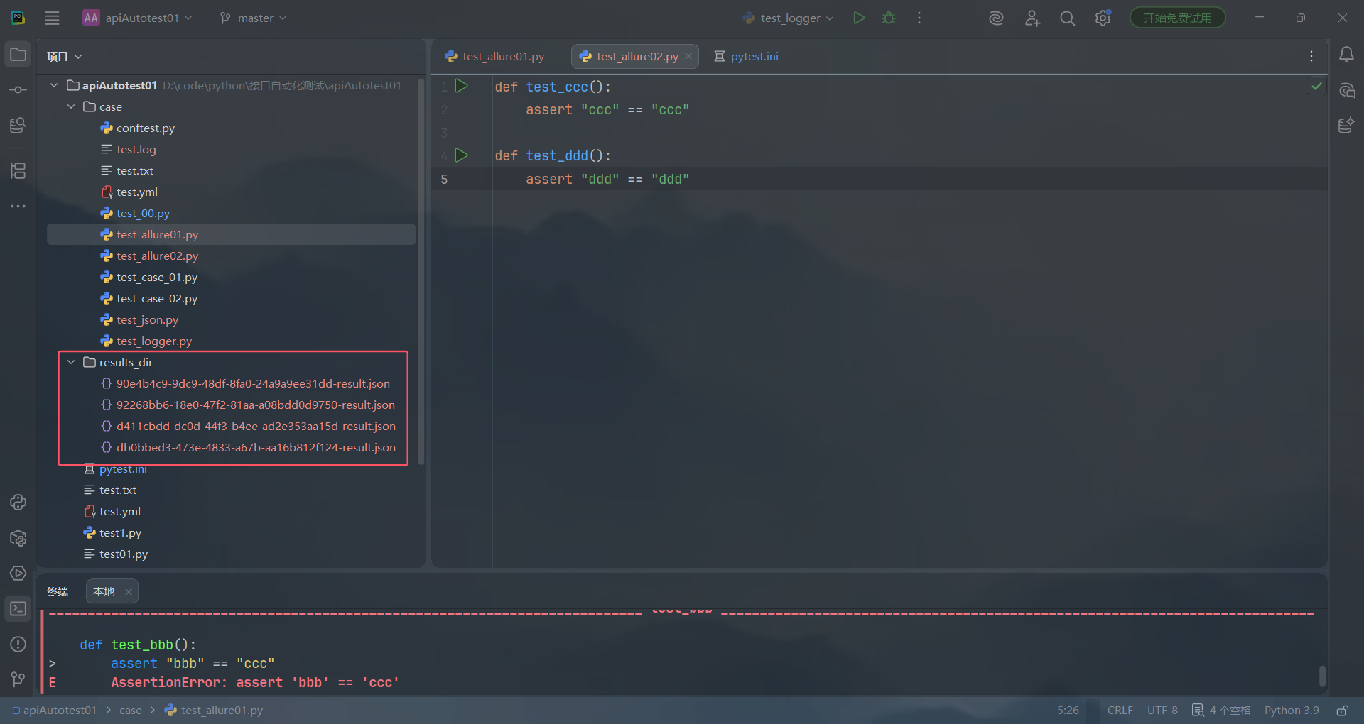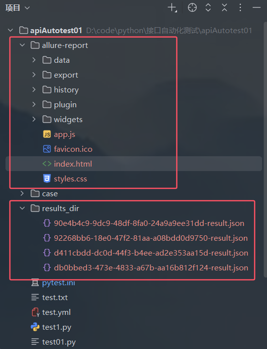 生成测试报告可以在控制台通过命令将结果保存在results_dir文件夹中,也可以在pytest.ini文件中配置测试报告放置路径